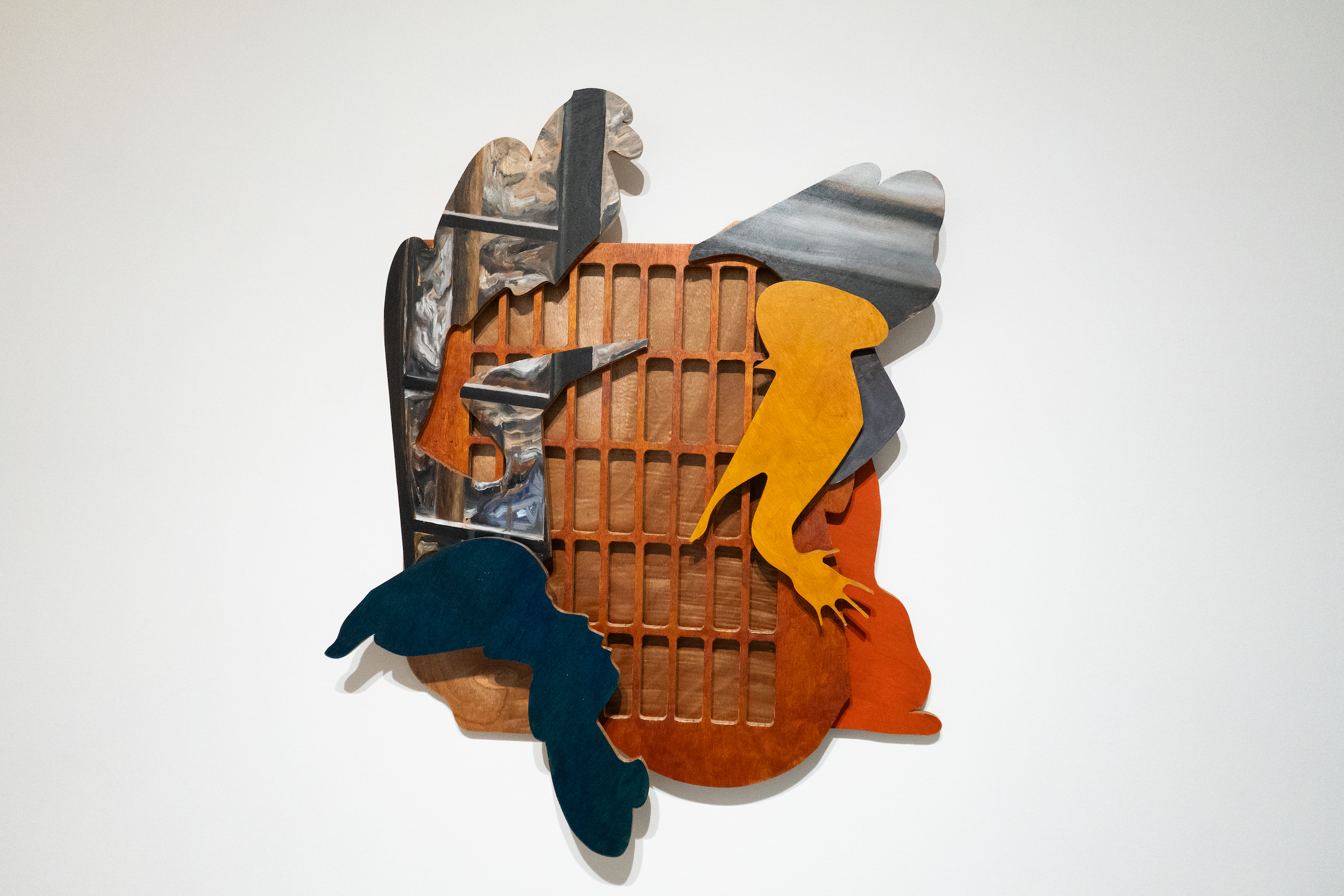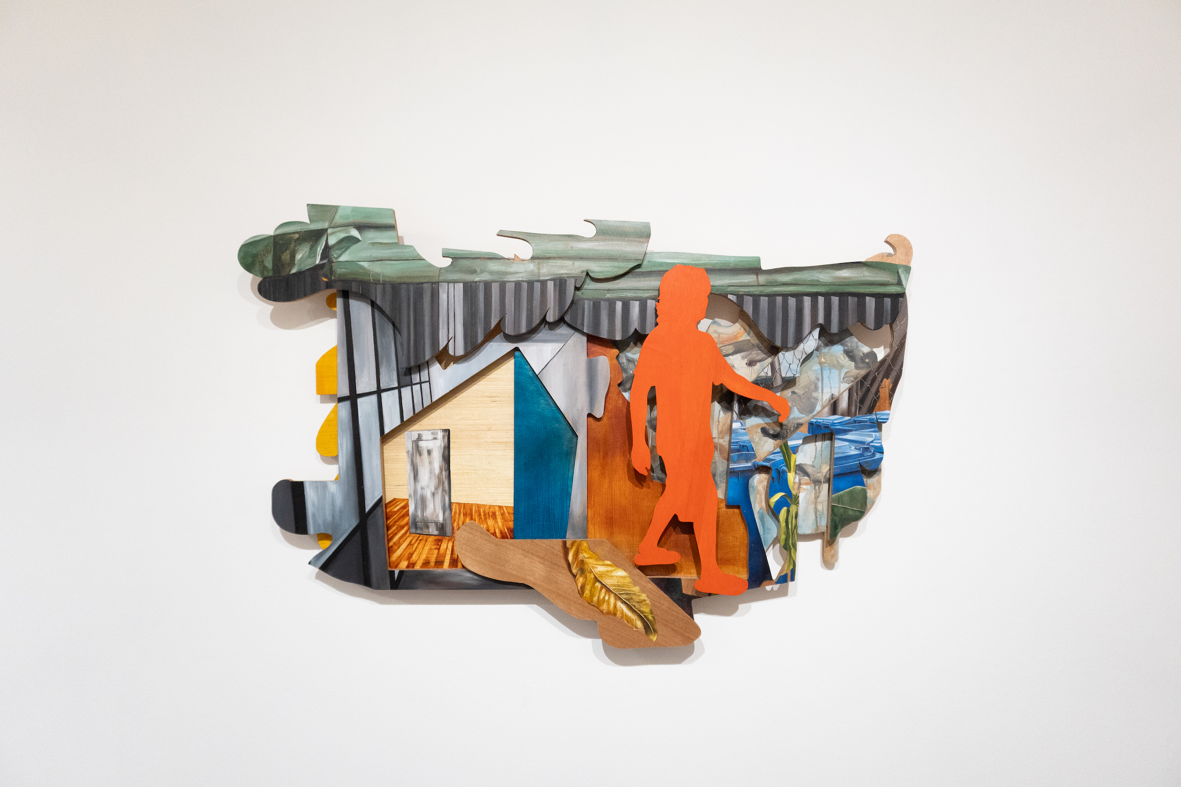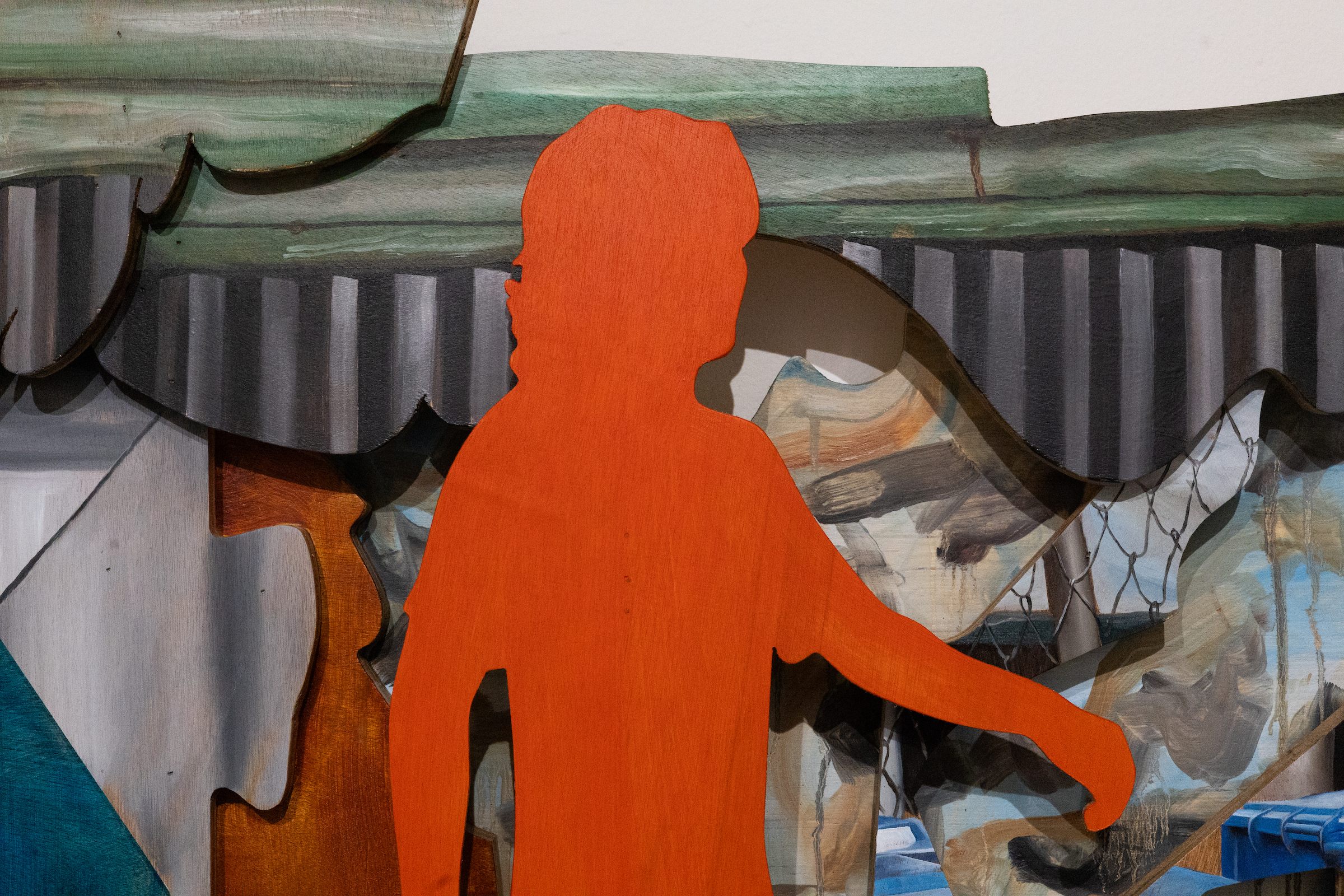 Abac likens his method to ‘tagpi-tagpi’ (patchwork), where he (dis)assembles images drawn from moments during his artist residency in New York last year: planning, administrative processing, fundraising, the residency itself, and the eventual return home. Sourced from photographs taken with his mobile phone, these scenes travel from memory to screen to physical work through the interplay of digital collaging, woodcutting, and oil painting.